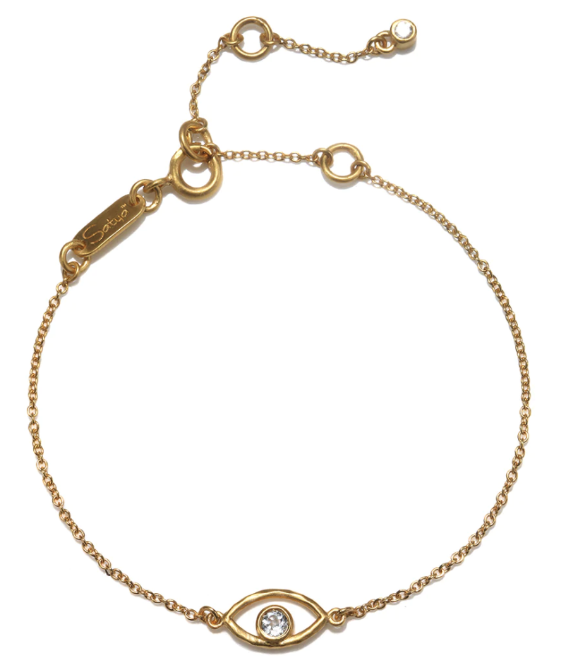 Your spirit is guarded by the light of the Universe. White topaz, stone of individuality, creativity and awareness, is rendered in a protective eye for a bracelet to enhance intuition and enlightenment.